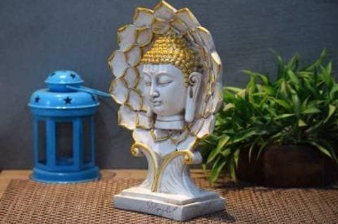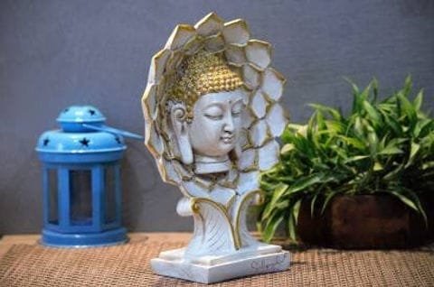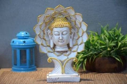 Be the first to review “Buddha Face Statue with Lotus Halo | White & Gold Polyresin Idol | Feng Shui Spiritual Home Décor Showpiece for Living Room, Office & Gifting” Cancel reply